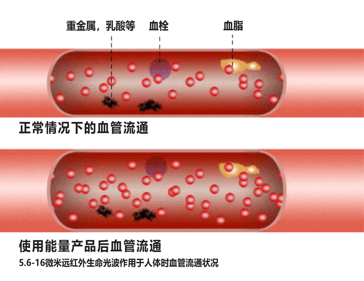 生物能量波可带动人体细胞每秒上亿次的振动,剥离血管中的毒垢,还原微循环常态